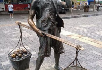 • 市井吆喝?銅鑄商販擔貨喚市景
